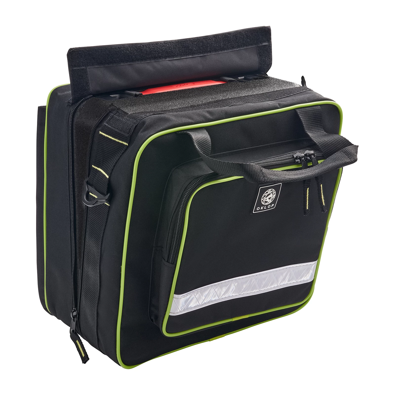 Cu ajutorul curelei de umăr confortabile, putem lua cu noi instrumentul preferat în drumeții mai lungi. Așa cum ne-am obișnuit deja cu gențile Oklop, o bandă reflectorizantă ne asigură siguranța atunci când trebuie să mergem pe jos pe marginea drumurilor noaptea.