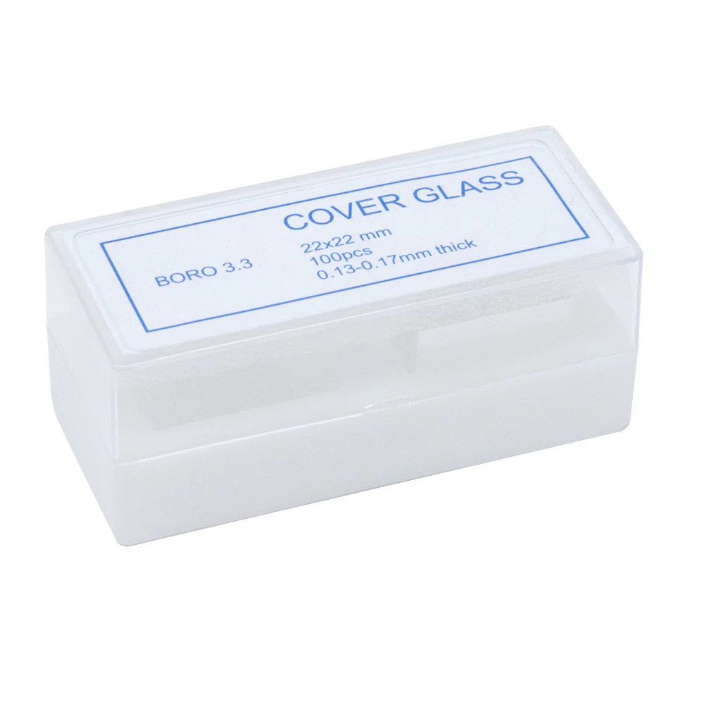 Capacul pentru microscop trebuie plasat deasupra preparatelor așezate pe lamă. Pentru utilizare generală, recomandăm capacul de 22 mm x 22 mm, cu o grosime de aproximativ 0,17 mm. Este disponibil în pachet de 100 bucăți.