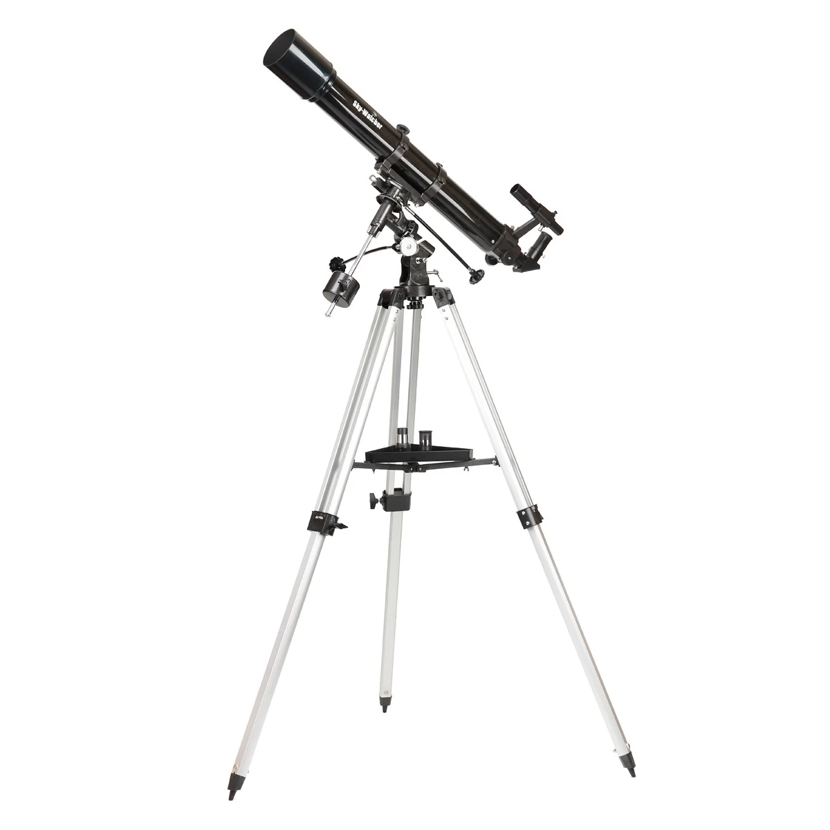 Mecanica EQ-2 este dotată cu mișcare fină, permițând urmărirea manuală simplă și precisă a cerului cu telescopul. Motorul opțional face această operațiune și mai ușoară, menținând automat ținta în câmpul vizual al telescopului. Refractorul SkyWatcher 90/900 permite plasarea mai multor accesorii pe tava pentru oculare, inclusiv un ceai fierbinte pentru observații. Picioarele extensibile din aluminiu pot fi ajustate la înălțimea utilizatorului. Dacă prețul avantajos este important, alegeți varianta EQ-2, iar pentru stabilitate excepțională, varianta EQ-3.