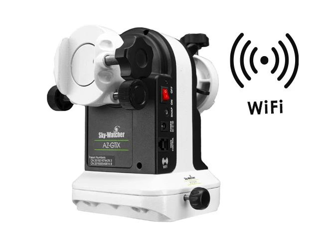 Noul SkyWatcher AZGTiX mecanism azimutal are particularitatea de a putea susține simultan două tuburi mai mici. Este un dispozitiv cu mișcare motorizată și control GoTo, care poate fi controlat prin smartphone sau tabletă prin conexiune WiFi. Opțional, poate fi utilizat și cu un controler manual SynScan. Datorită encoderelor integrate, poate fi mișcat liber manual, fără a pierde poziția, permițând trecerea între căutarea automată și cea manuală fără a fi necesară recalibrarea.