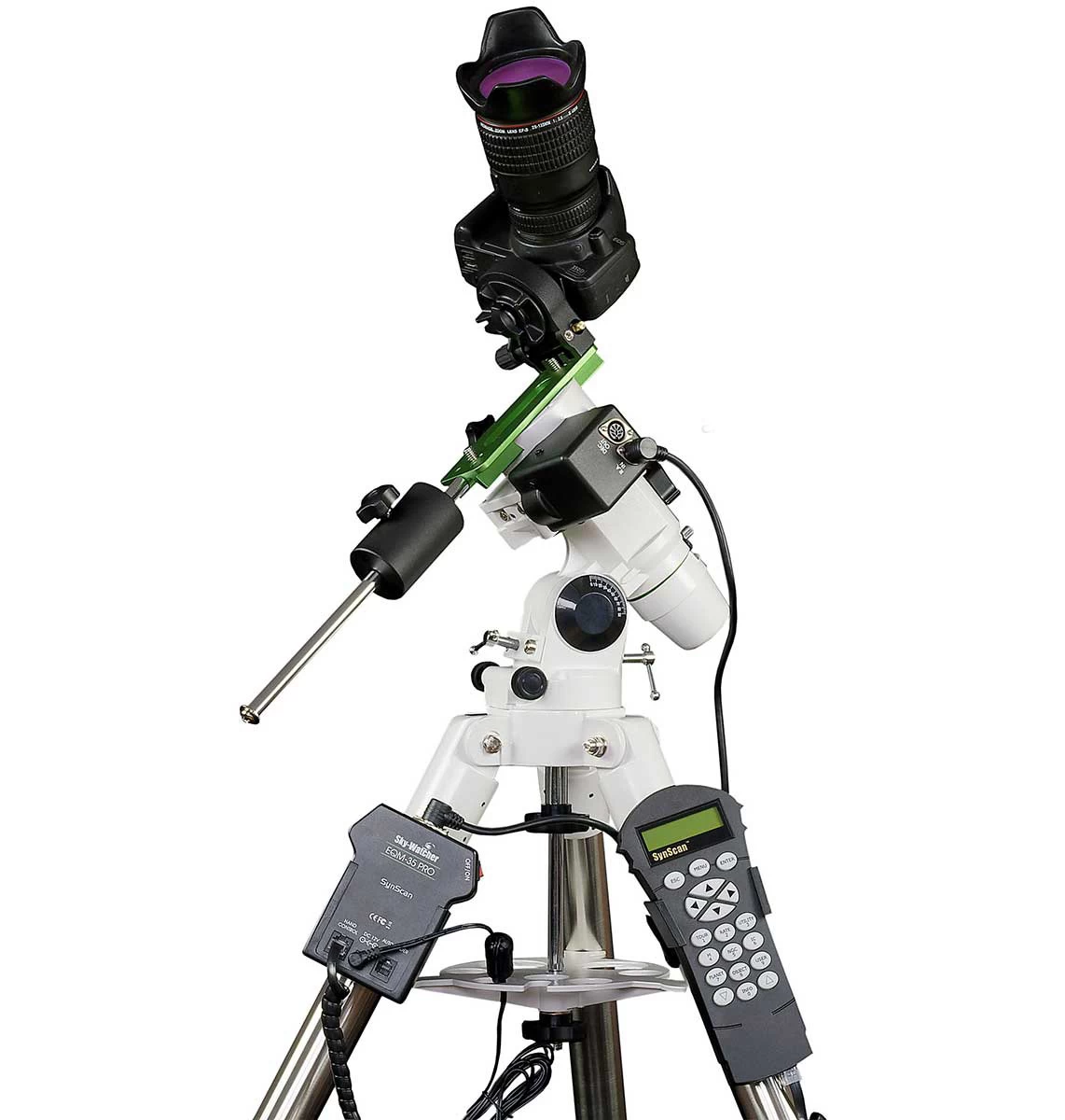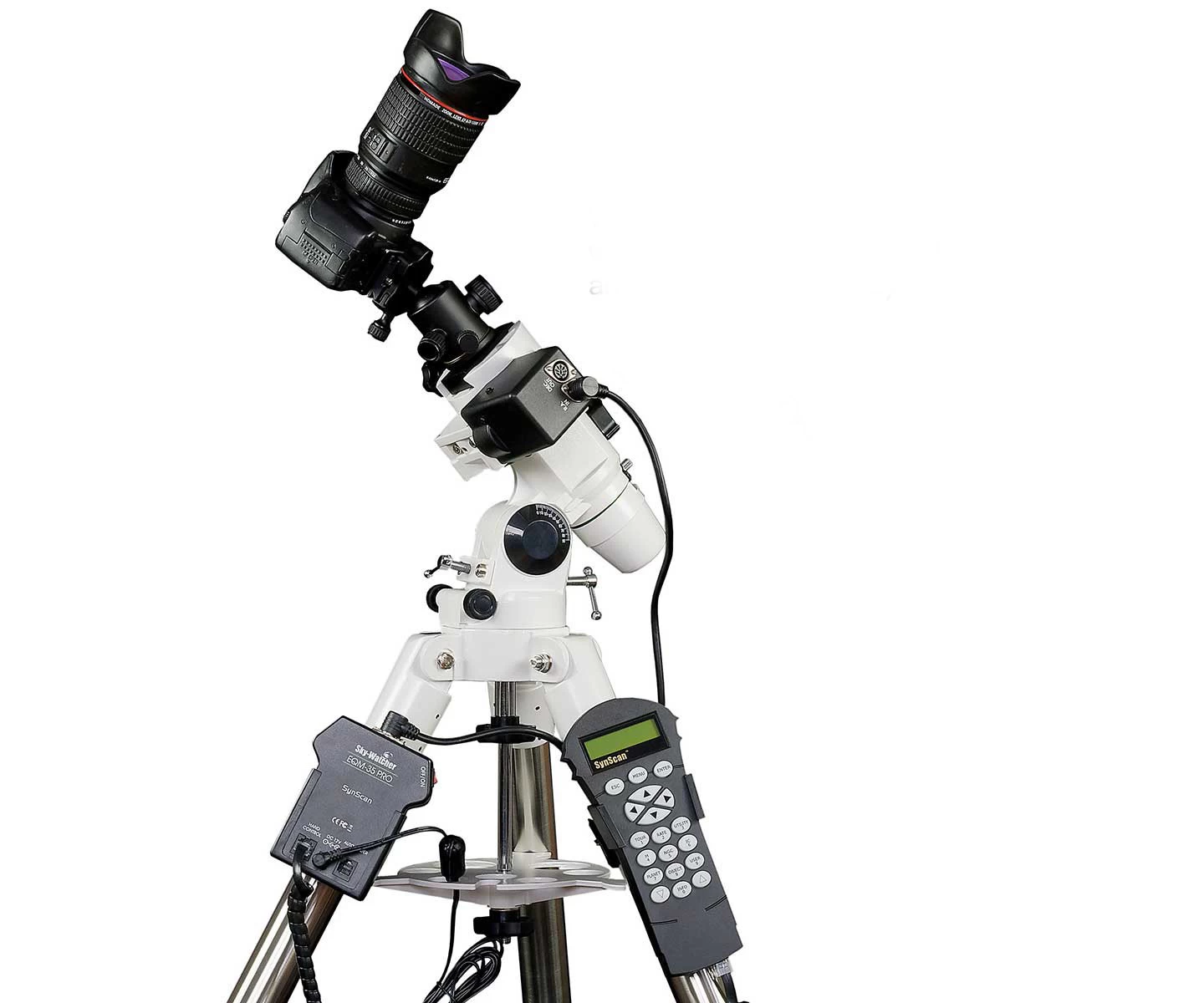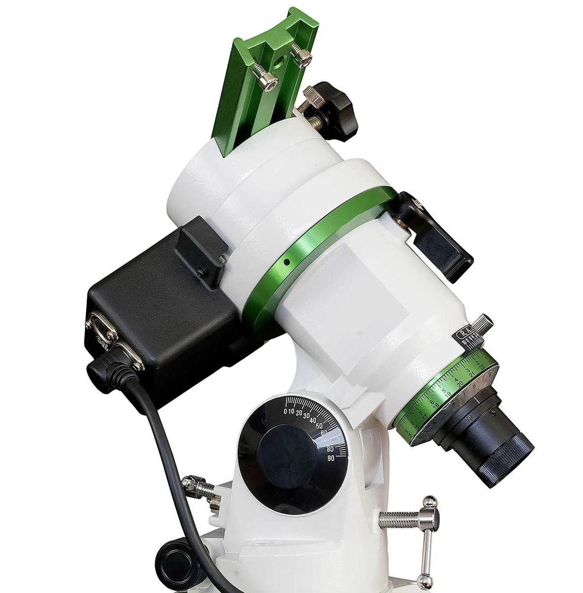 Mecanica SkyWatcher EQM-35 Pro Goto poate fi familiară pentru cei care au avut sau au o mecanică EQ-3. Totuși, acest model este mult mai mult decât s-ar putea crede la prima vedere. Capul mecanicii se sprijină pe trepied din oțel foarte stabil, cunoscut de la HEQ-5, iar capul în sine ascunde câteva surprize. Pe lângă faptul că dispune de funcționalitate completă GOTO, poate fi utilizat și ca o mecanică astrofotografică ușor de transportat. Luneta polară încorporată ajută la alinierea precisă la pol. Pe capul mecanicii se poate monta orice telescop cu șină prismatică standard Vixen, până la o greutate de 10 kg. Roata melcată cu diametru mărit și reproiectată minimizează erorile periodice.