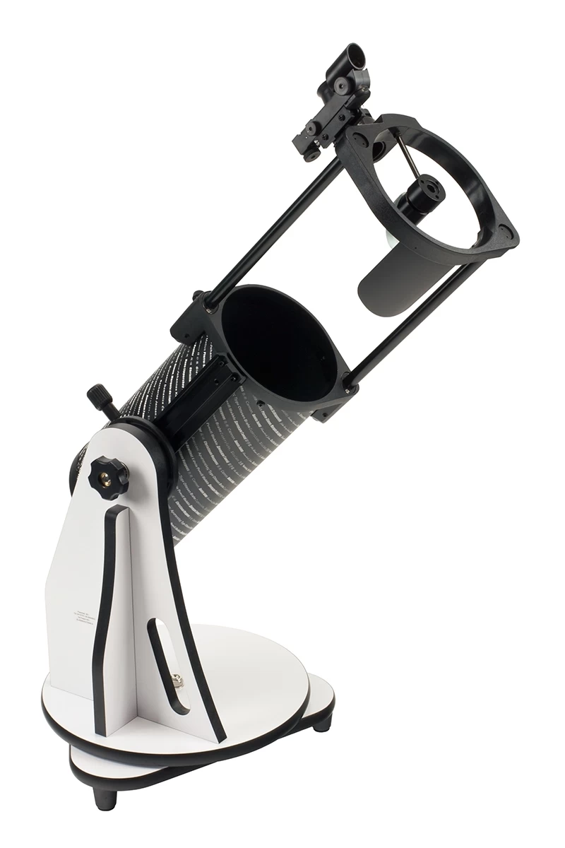 Avantajul clasicului trepied Dobson nu este doar portabilitatea, ci și stabilitatea ridicată. Spre deosebire de telescoapele pentru începători montate pe trepiede ecuatoriale mai simple, imaginea nu tremură nici la măriri mari. Greutatea totală a telescopului (trepied plus tub) este de 6 kilograme, astfel încât poate fi mutat cu ușurință dintr-un capăt al grădinii în celălalt. Tubul pliat are doar 44 cm lungime. Telescopul vine cu două oculare barium de 25 mm și 10 mm, care oferă măriri de 26x și respectiv 65x. Desigur, prin achiziționarea de oculare suplimentare sau a unei lentile Barlow, gama de mărire poate fi extinsă până la 200x.