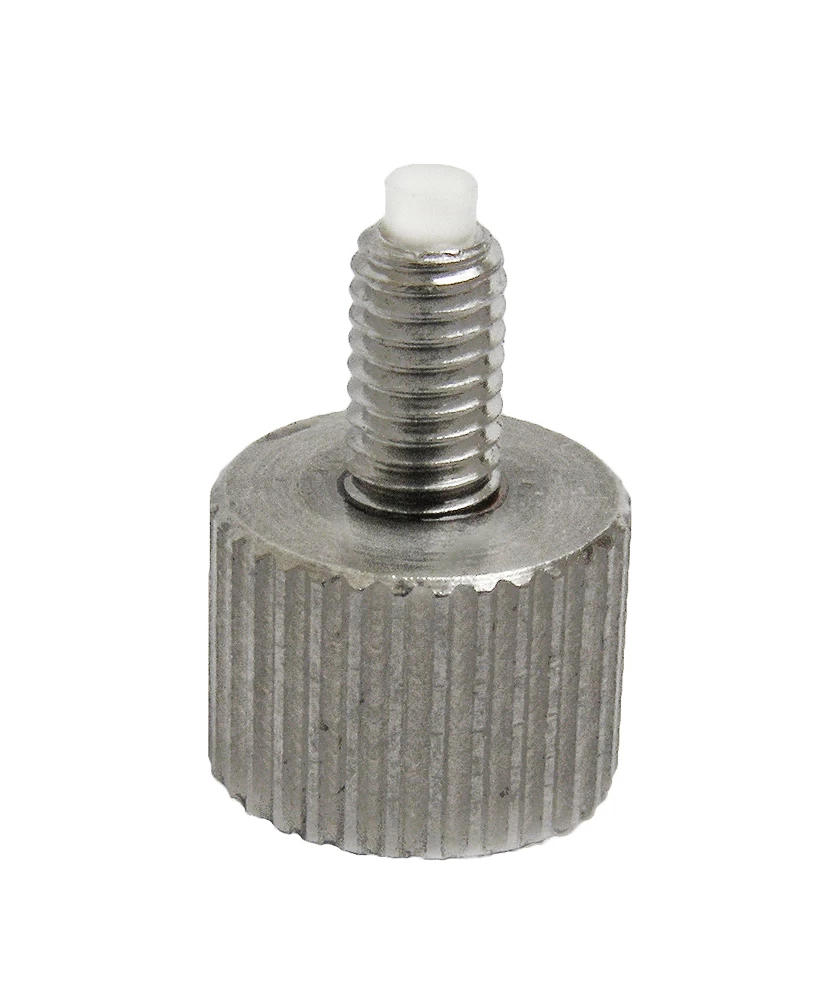 Șurub metric cu filet M3, lungime de 10 mm. Datorită capului zimțat, nu este necesară o unealtă separată, poate fi înșurubat manual. La capătul șurubului se află un insert din plastic, care, datorită elasticității sale, previne zgârieturile cauzate de vârf.