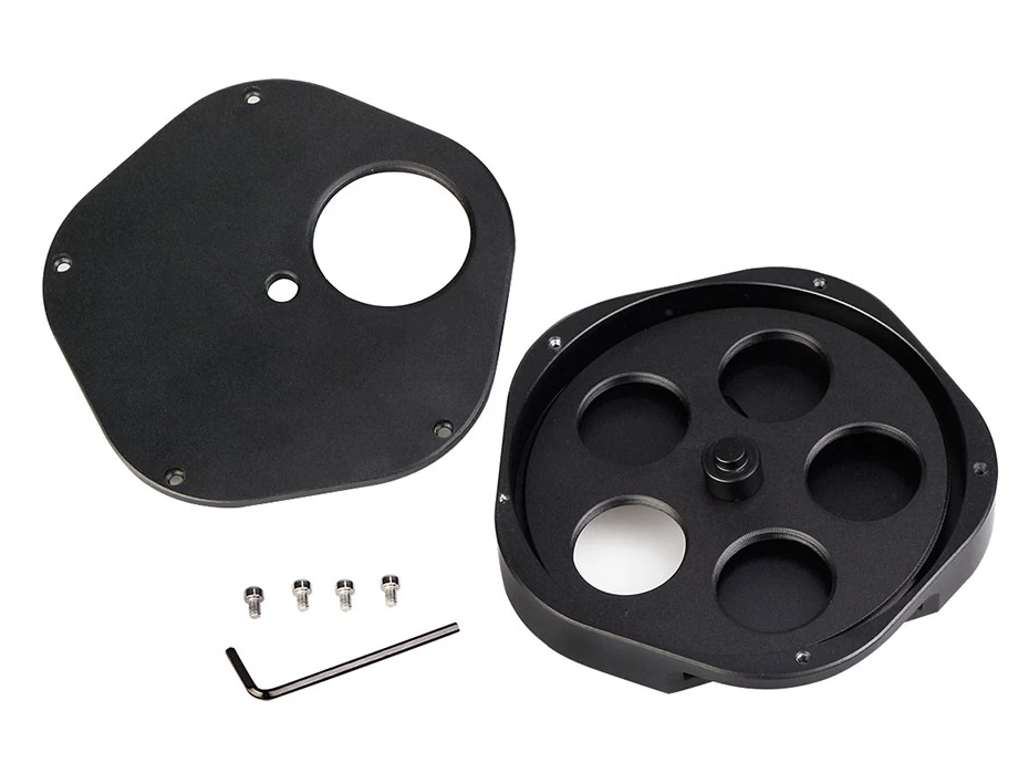 În roata de filtre cu 5 poziții pentru filtre de 1.25", filtrele pot fi schimbate rapid. La schimbare, un clic clar audibil indică faptul că un alt filtru este utilizat. Fiecare poziție a roții de filtre este marcată cu numere albe, astfel încât este suficientă lumina unei lanterne de observație pentru utilizare.