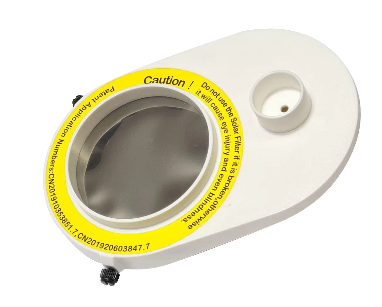 Filtrul solar poate fi montat pe un diametru exterior de 67 mm, cum ar fi telescopul Newton de 50 mm de la Acuter. Suportul din plastic este echipat și cu un căutător solar.