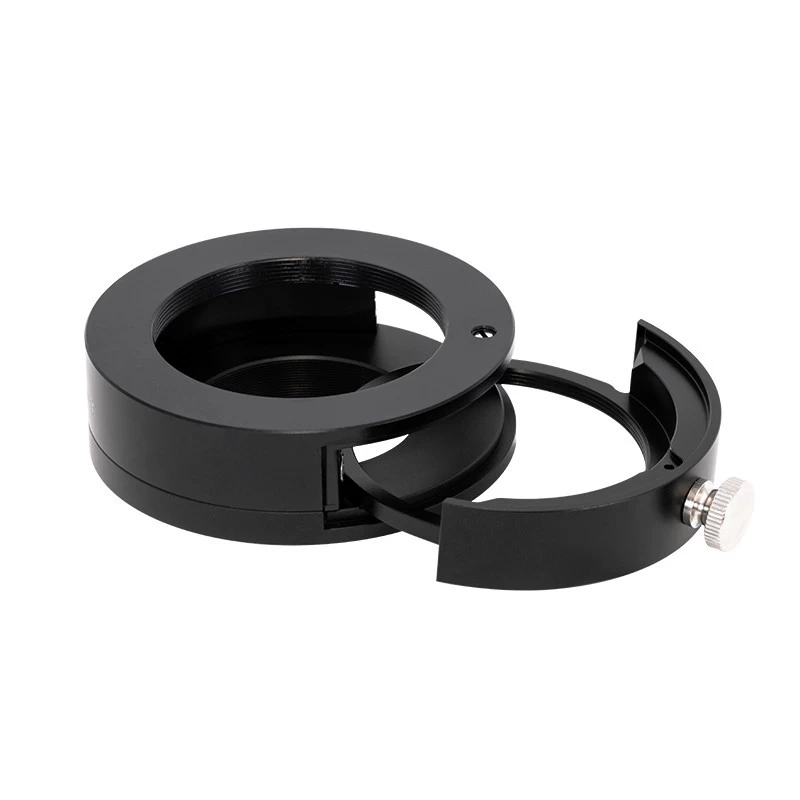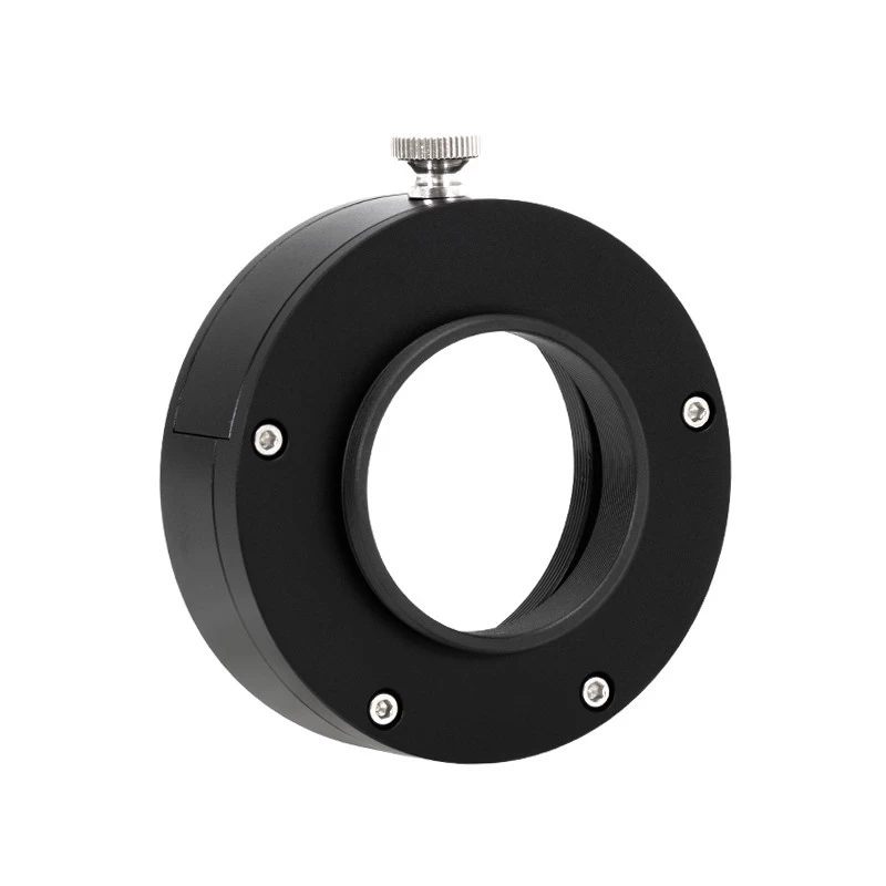 Suportul pentru filtru se fixează pe camera noastră cu filet T2. Pe partea telescopului, găsim un filet M48, dar este disponibilă și o opțiune de conectare cu filet T2 folosind adaptorul M48/T2 inclus în pachet.